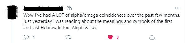 Turns out, someone else on Twitter has been experiencing some coin-incidences with Alpha and Omega too, and just happened to be looking into the meanings of Aleph and Tov just yesterday: